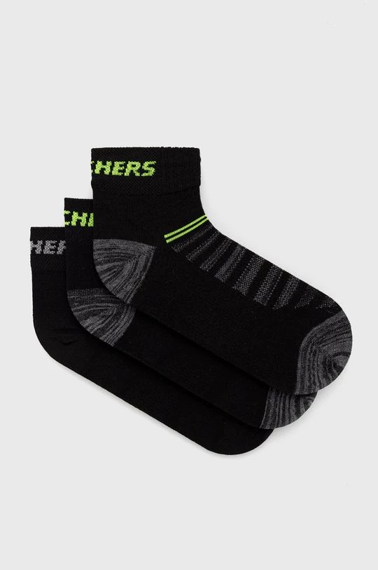 Κοντές κάλτσες από τη συλλογή Skechers. Μοντέλο από ελαστικό ύφασμα. Στο σετ τρία ζευγάρια.